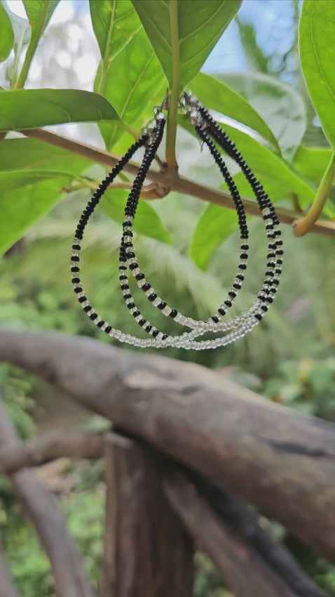 Treradet armbånd av sølv og sorte glassperler.