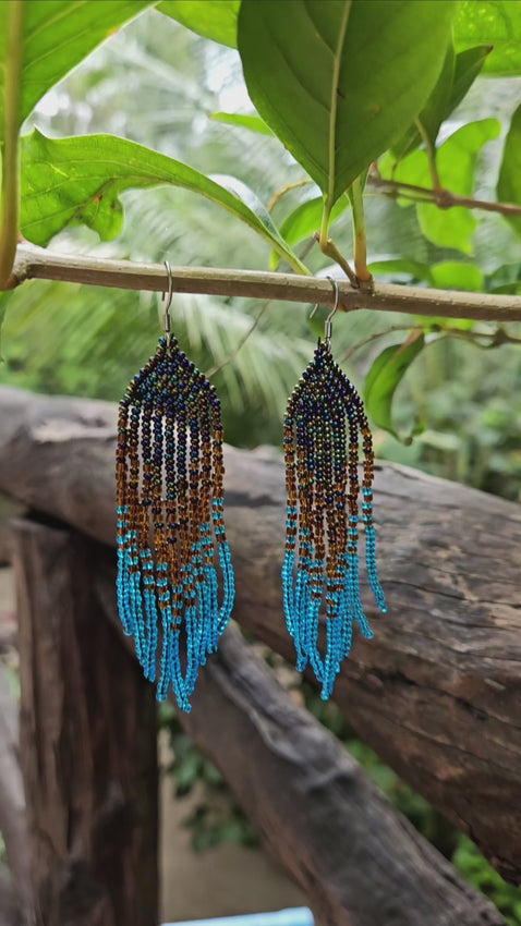 Lekker forseggjort ørepynt, skikkelig blikkfang av turkise, gylne og sorte glassperler.
